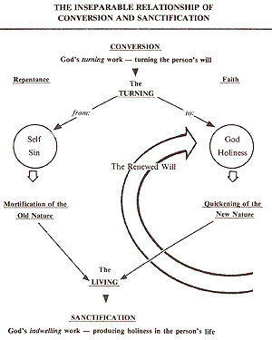 Sactification and conversion are intimately connected. Conversion refers to the turning of, and sanctification to the resulting living of, the renewed will. The inseparable relationship of the two is pictured in the sketch below. ![]() include "../doctrineincs/regufont.html"; ?> Sanctification testifies of the true believer's renewed, converted will. His new nature fears and hates the pollution of sin; instead, it loves and desires the purity of holiness. The true believer's deepest motive, longing and goal are to serve and please God. In the depth of his soul, he loves God more than self, holiness more that sin. include "../doctrineincs/regufont.html"; ?>The example on the following page illustrates this truth. |