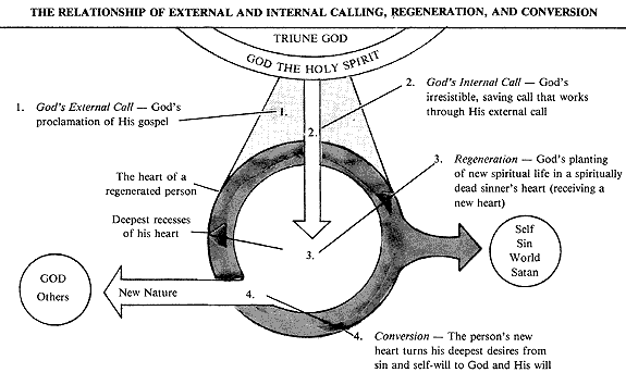 Imagine a ship with its entire crew fast asleep, heading for a fatal crash on the rocks of a certain island. The captain of another ship sees the approaching danger, pulls alongside, and sounds such an ear-piercing fog horn blast that the entire crew springs to its feet. Being awakened to see their danger, the crew works to turn the ship around and they are saved from impending destruction. In this story, how is: - The ear-piercing awakening call a representation of God's almighty, heart-piercing, spiritually-awakening, internal call? - The sailors' springing to life and seeing their condition a representation of regeneration? - The turning of the approaching death to life a representation of conversion? How does this story illustrate the effectual call and regeneration taking place together - the sending and hearing of the call? The necessity of all three to save a sinner from approaching destruction? How do internal calling, regeneration, and conversion each differ from the items they were compared with in this illustration? |