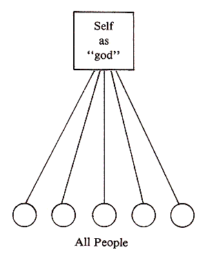 God is over all. He has proclaimed His will in His Word, the Bible. All persons are to conduct themselves according to, and will be judged by, its infallible, eternal, absolute moral standards. God and His Word are one; His truth being followed by all would produce a morally-strong and unified society. include "../doctrineincs/regufont.html"; ?>Secular humanism, however, presents an opposing model. This can be pictured as follows: ![]() Secular humanism places the individual self as "god." As god, the individual is to determine his own standards of morality, that which is right or wrong according to his judgment. The individual is to be true to himself, to follow his own will and word. The individual is to judge according to his own thoughts and feelings. As "god," he asks himself, "How will this affect me?" "Is this what I want?" "Is this pleasing to me?" include "../doctrineincs/regufont.html"; ?>Our natural, fallen, sinful heart has rebelled against God and continues to desire to be its own "god." Therefore secular humanism strongly and naturally appeals to fallen man. To man's self-centered, sinful heart, humanism proclaims that which appealing to him. include "../doctrineincs/regufont.html"; ?>When put into actual practice, however, the humanistic model |